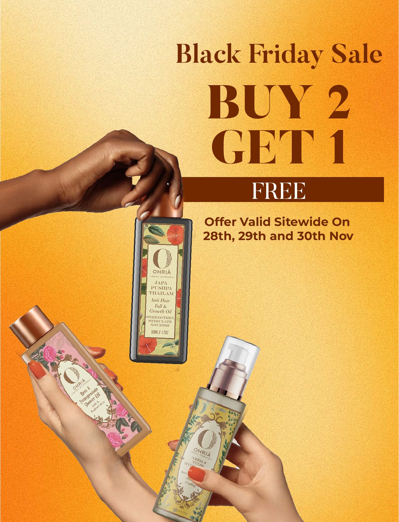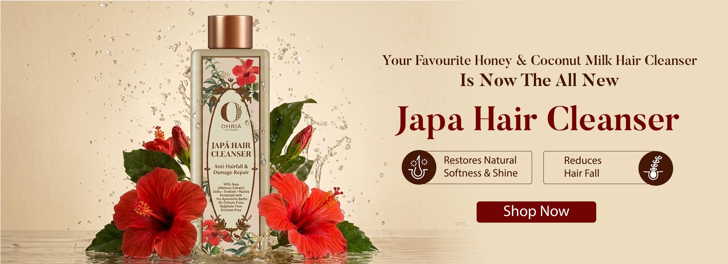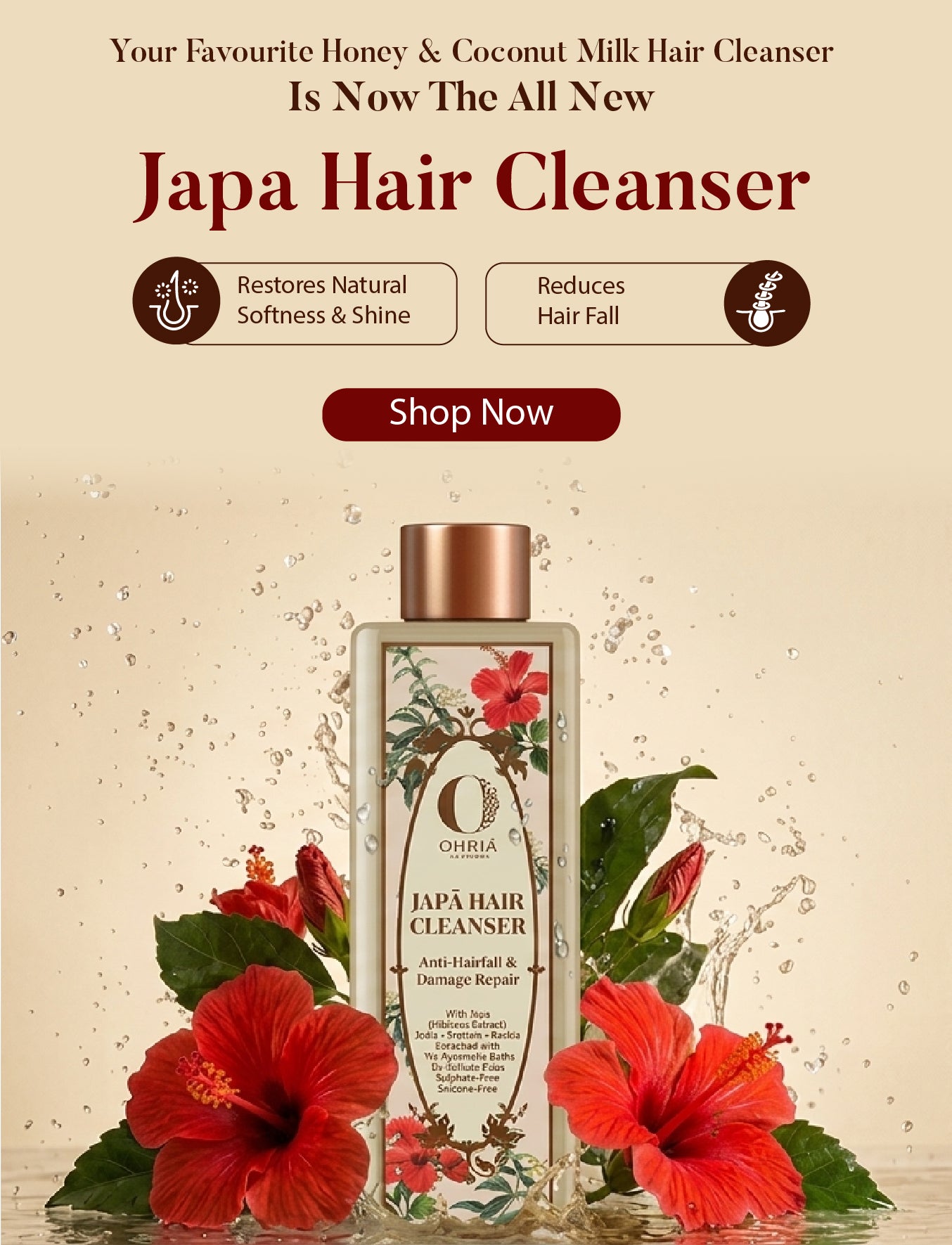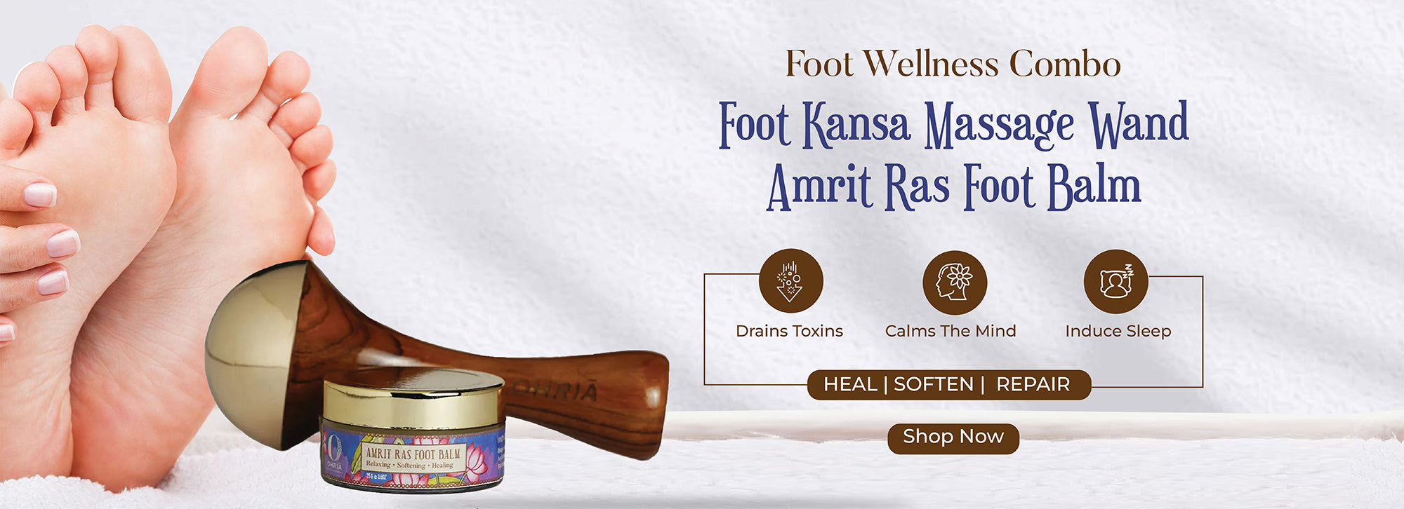 Ohria’s portfolio features iconic products like Japa Pushpa Thailam for hair fall, Shata Dhauta Ghee Cream for glowing skin, Banyan Root Hair Tonic for vitality, and Moringa and Ylang Ylang Hair Serum for protection. Other highlights include Turmeric Butter for pigmentation, Rose Shower Oil for smooth skin, and Amrut Beej Mask for a spa experience. Ohria also offers the Ultimate Massage Tool and the pioneering Kansa Wand. Our eco-friendly gift sets and handcrafted products reflect our commitment to timeless natural beauty and environmental sustainability.