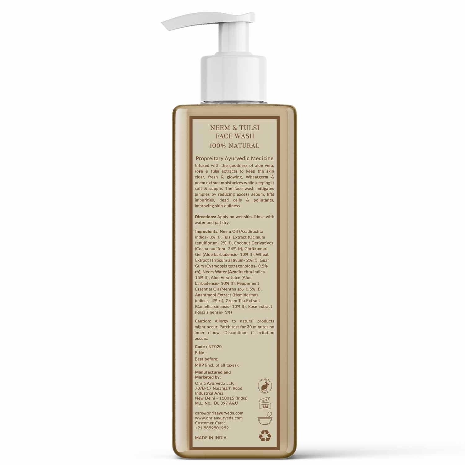 The Neem & Tulsi Face Wash is formulated with natural ingredients and is free from harsh chemicals. Always check the ingredient list to confirm.