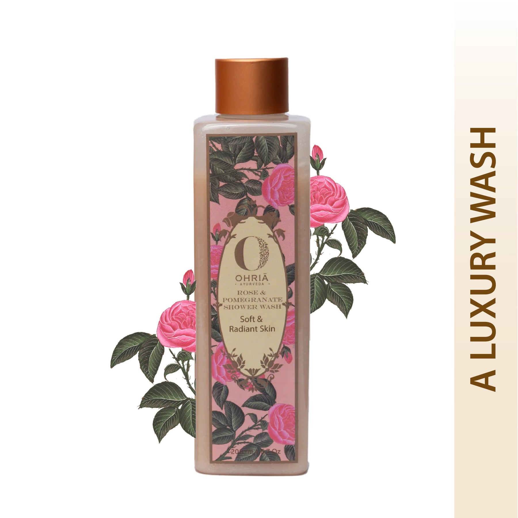 A Divine Indulgence- Elevate your bathing ritual with our luxurious Rose Shower Wash. Immerse yourself in an opulent experience as the delicate aroma of freshly bloomed roses envelops your senses. Crafted from nature’s finest ingredients, this gentle formula pampers your skin, leaving it soft, hydrated, and glowing with luminosity. A blend of Rose Extract, Anantmool, Pomegranate, Neem, and Aloe nurtures your skin, while Coconut and Guar Gum provide a silky, supple feel without leaving it dry and itchy. Discover the rejuvenating power of this natural cleanser and unveil velvety-smooth, radiant skin.