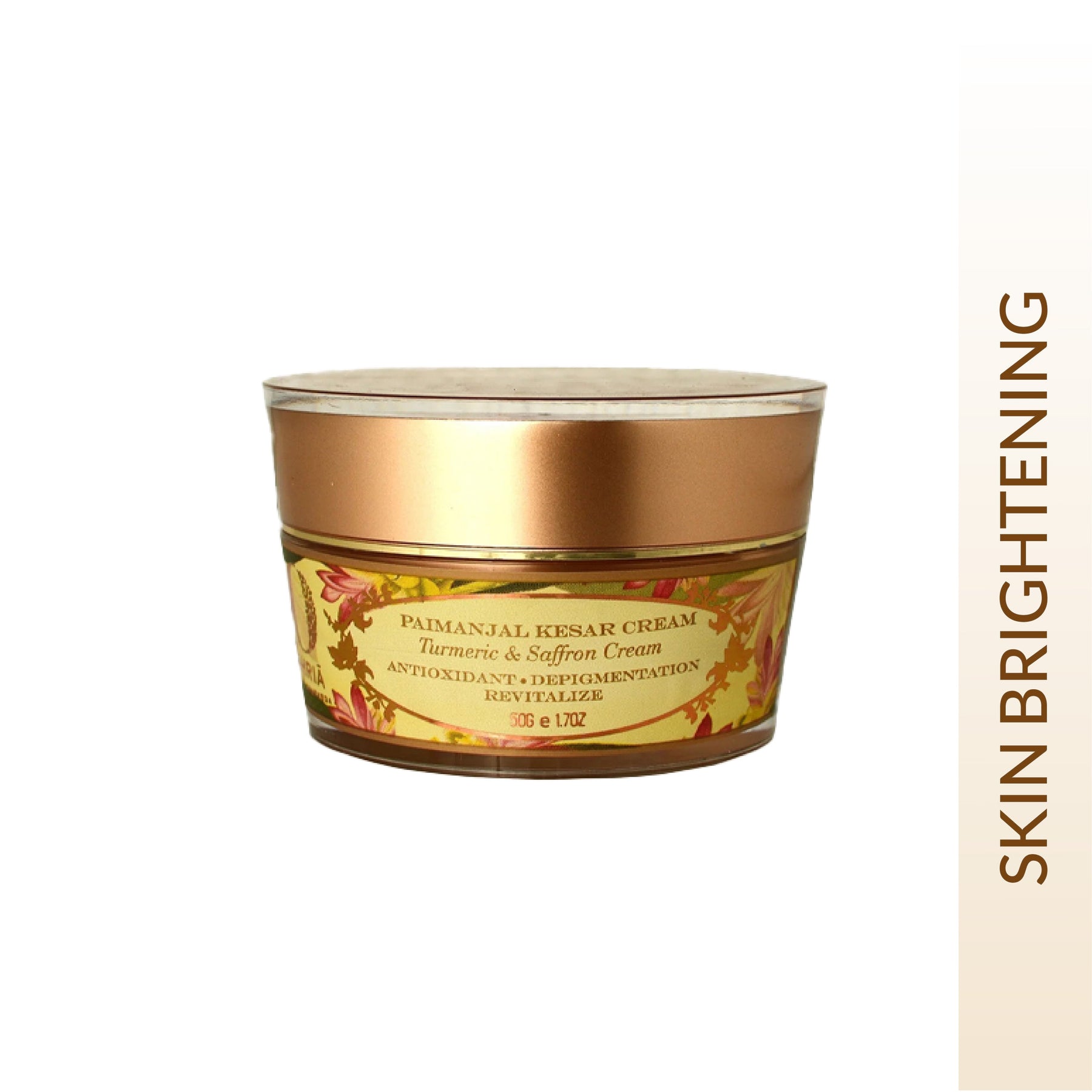 This formula is suitable for all skin types and serves as a natural sun protectant while deeply moisturizing and promoting de-pigmentation for a luminous glow. Crafted from 100% pure Ayurvedic essences, it features turmeric combined with saffron, rose, cow's ghee, manjistha, and other herbs to hydrate and heal the skin from within. Its anti-inflammatory and skin-clarifying properties, along with powerful antioxidants, help reduce blemishes and acne, while reversing the harmful effects of environmental pollutants. Additionally, Yashad Bhasma and Kulanjan offer natural sun protection.