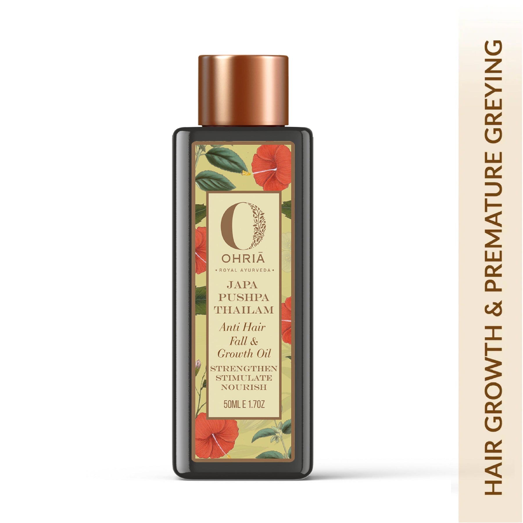 Japa Pushpa Oil is designed to combat- premature greying and stimulate new hair growth.