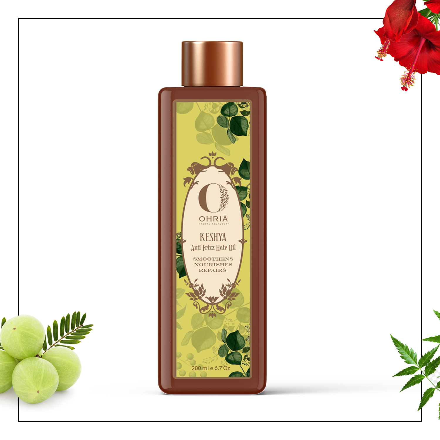 The oil is infused with enriching Ayurvedic herbs and natural oils that nourish the hair and scalp.