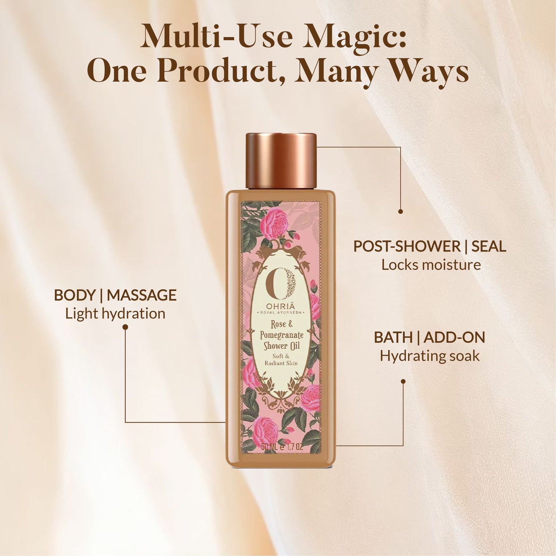 Unlike traditional body washes, the Rose & Pomegranate Shower Oil offers deep moisture and nourishment. Its blend of natural ingredients, including rose extract and pomegranate, provides a luxurious bathing experience and helps maintain skin’s natural radiance.