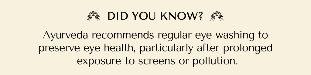 Regular eye cleansing with Triphala kashaye hydrates tired & over worked eyes, strengthens eye muscles, improves eye sight & reduces dark circles. It reduces & balances pitta (heat of eye) and removes toxins, dirt & pollution. Thus, it is an anti-aging ritual for eyes which prevents fine lines & wrinkles.